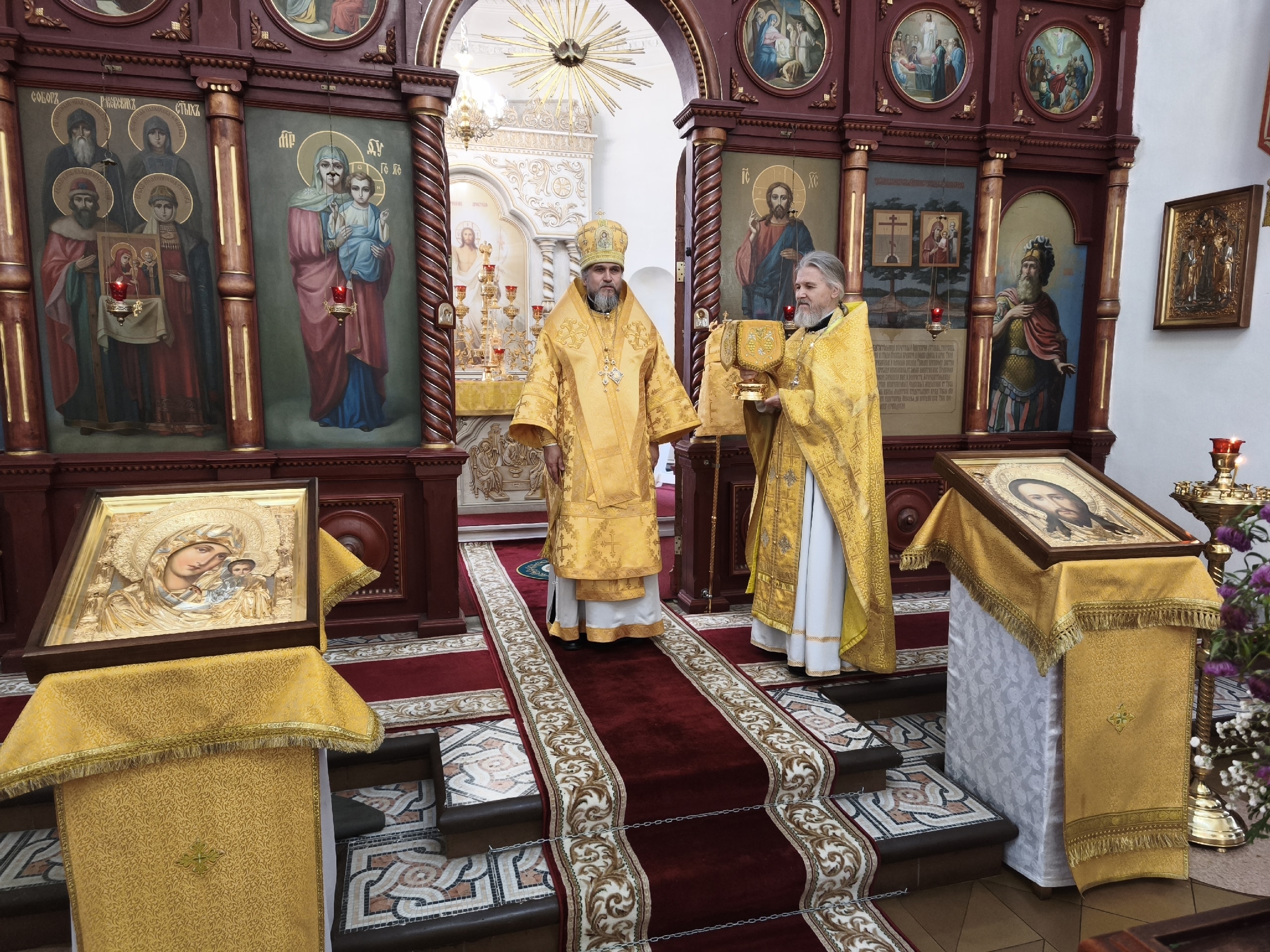 Преосвященному владыке сослужили: настоятель собора иерей Сергий Макаров и иерей Владислав Феценко.