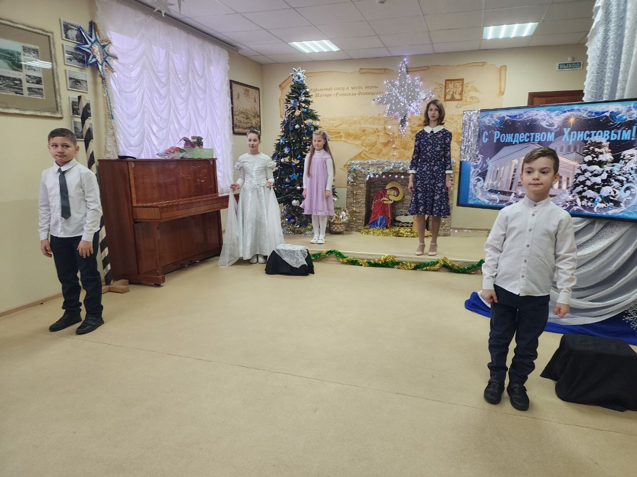 Ребята воскресной школы вместе со своими педагогами подготовили праздничную Рождественскую программу. Дети читали стихи о Рождестве Христовом, показали добрый спектакль «История одной открытки», Аня Шестакова исполнила Рождественские мелодии на флейте.